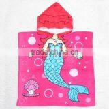 Hotsale Velour Printing Cotton Poncho Towel for Kids,custom Terry Cloth Poncho Hooded Beach Towel for Promotion
