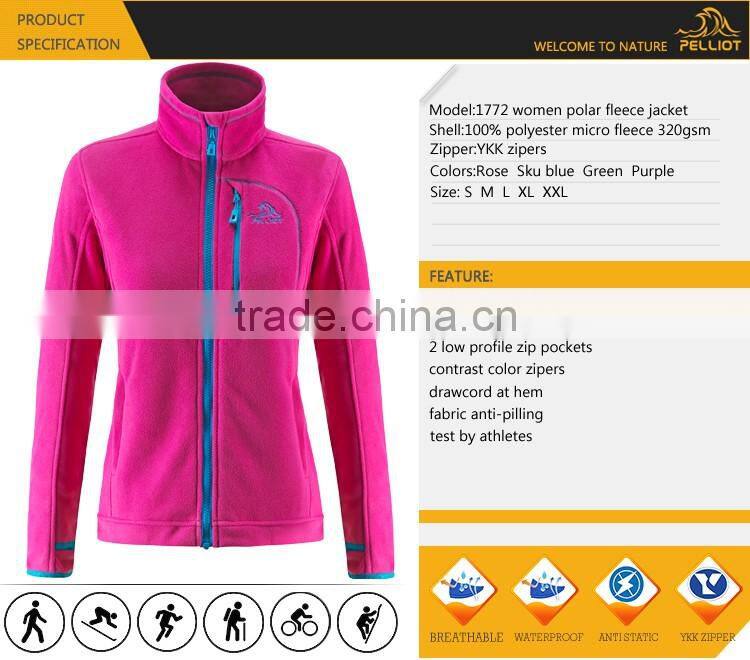Specification | Sport Type: Hiking & Climbing Shell:100% Polyester Fleece Zipper: Waterproof YKK Zipper Size: S M L XL XXL Color: Rose red, Purple, Light green, Sky blue