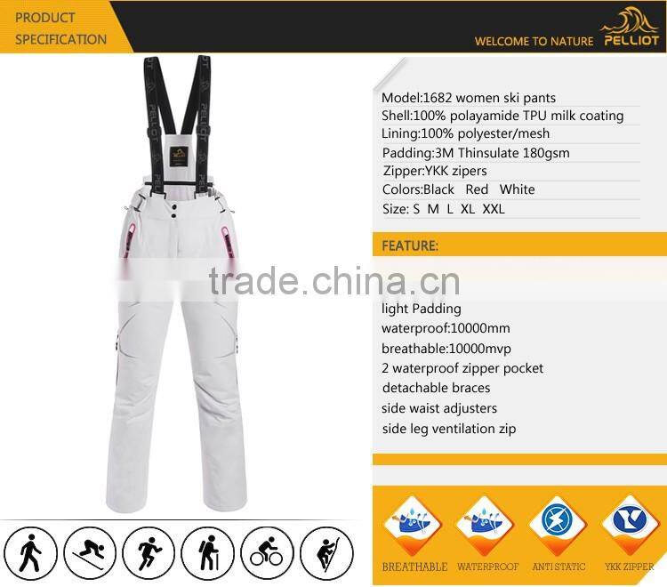 Sport Type: Running & Skiing Shell:100% Nylon PU Milk Coating Lining:190T Nylon Zipper: Waterproof YKK Zipper Feature: Size: S M L XL XXL Color: Black Waterproof: 10000mm MVTR: 10000g/m2/24h Detachable Braces 2 Waterproof Zipper Pockets Side Waist Adjusters Side Ventilation Zips Elasticated Back Laser Cutting / Taped Seams / Reflective Prints |