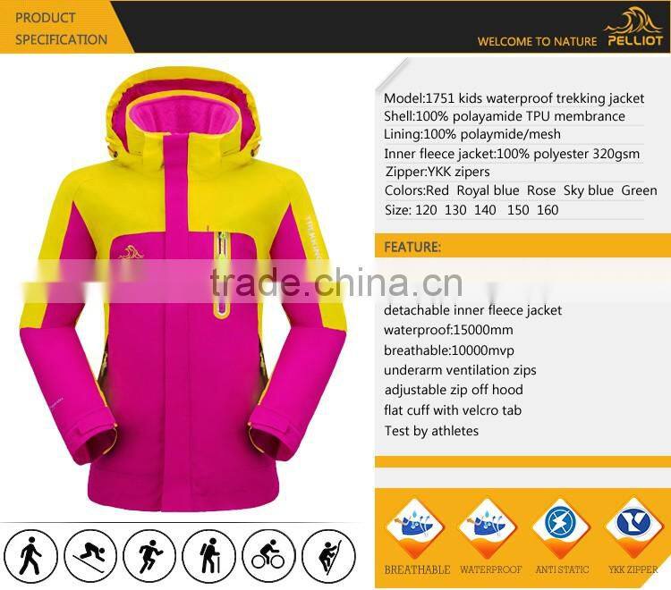 Specification | Sport Type: Hiking & Climbing Shell:100% Polyester Liner:100% Polyester Fleece Zipper: YKK Size: S M L XL XXL Color: Green Red,Peacock blue,Sky blue,Rose red,Deep red,Deep blue,Light blue Waterproof:10000mm MVTR:10000g/m2/24h