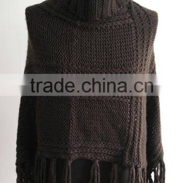 2014 Fashion ladies turtle neck knitted poncho pullover sweater |