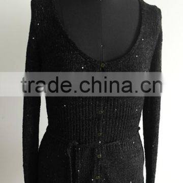 Ladies black sequins yarn knit cardigan sweater factory |