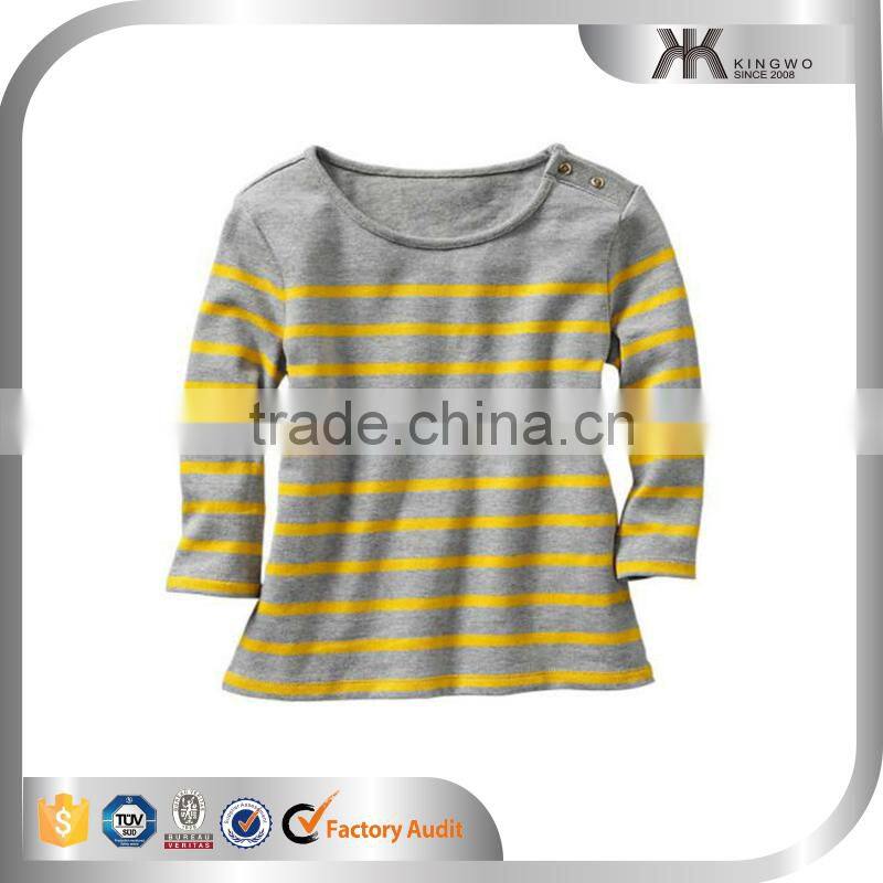 Home > Products > Kidswear > 100 % Cotton Button Round Neck Long Sleeve Yelllow Strip t Shirt for Infant Kid Girls Spring Apparel