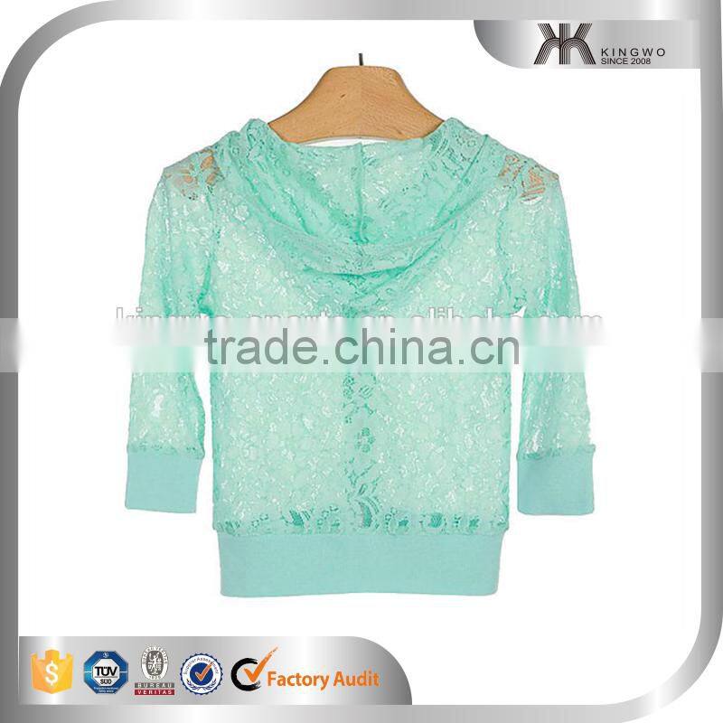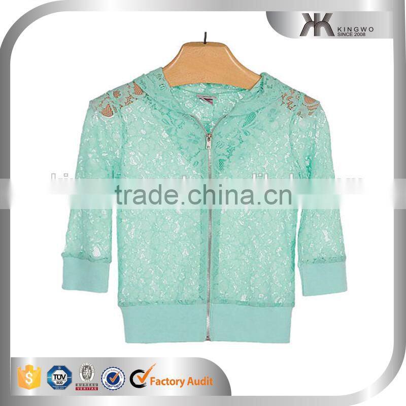 Hot sale Summer all over lace zip up hooded kid jacket for girls