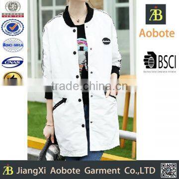 2015 Hot Selling Long Women Plain Baseball Jacket