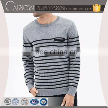 Navy stripes crew neck cotton long sleeve men pullover sweater with chest pocket |