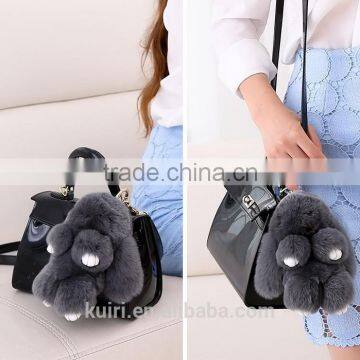 Cute Mini Genuine Rabbit Fur Pom Pom Key Chain Women Trinket Rabbit Toy Doll Bag Car Key Ring Monster Jewelry Gift