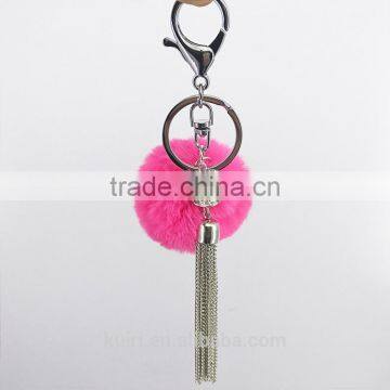 Cute rabbit Faux fur ball key chain metal tassel fur ball keychain bag charms 115