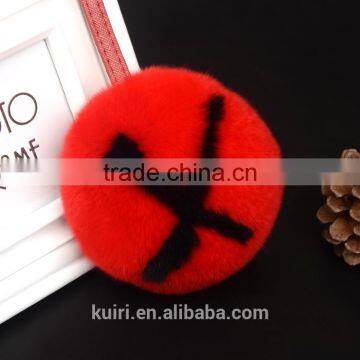 Selling English Letters Design Rex Rabbit/fox Fur Pom Pom Keychain