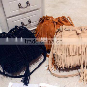 Small bucket women tote bag 2016 high quality tassels genuine leather bag women messenger bags famous