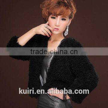 Promotion price black woman faux fur short coat lady curly sheep fur jackets