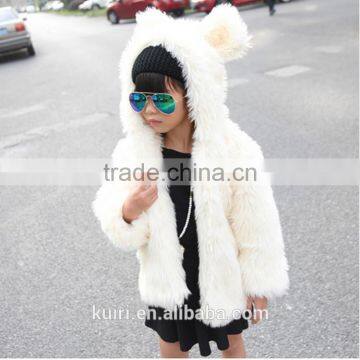 Hooded Winter Fur Jacket Girls European Style Fur Coat Autumn Kids Plush Jacket Thick Padded White Black Leopard Rabbit Ear |