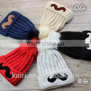 Cartoon Smile Face Lovely Acrylic Knitted With Faux Fur Ball Beanie Women Men Autumn Winter Cap Warm Hat