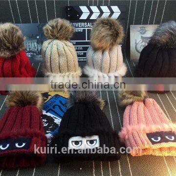Brand Design Winter Knit Thicken Hat Monster With Faux Fur Poms With Super Quality