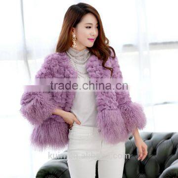 Women's Real Rabbit Fur Coat With Mongolia Lamb Fur Big Skirt Hem Bright Color Natural Fur Coats Female