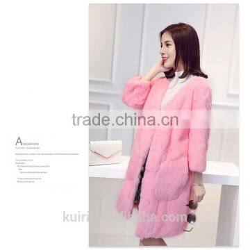 New Arrival Long Genuine Gray Rex Rabbit Fur Coat for Women Fashion Warm Real Fur Coats Plus Size Winter Jacket