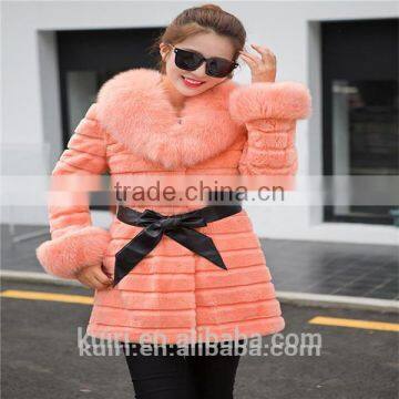 Large Size Real 2016 Winter New Women Fox Fur Collar Rabbit Fur Coat Outwear Female