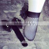 WS-27 Fashion Cute Women's Harajuku Black Mesh Short Ankle Socks Grid Fishnet Docks Sexy Bow Funny Ladies Socks In The Net