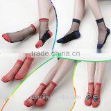 WS-45 Beautiful Women Lace Socks Crystal Glass Silk Short Thin Transparent Roses Flower Socks
