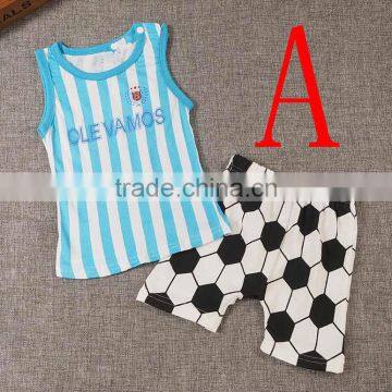 New Item 2016 Children Clothes Baby Boy Boutique Football Outfit Clothing Set Cartoon Letter T Shirt Stripe Shorts
