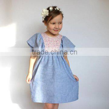 vintage floral printing 100% linen girls fancy dresses 3-5 year old girl dress kids clothing wholesale