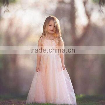Little Girls Peach Tutu Long Maxi Dress Flower Girls Floor Length Wedding Dress