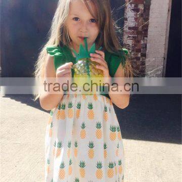 Pineapple Print Girls Pinny Dresses Summer Dress Newbron Frill Baby Frock Designs