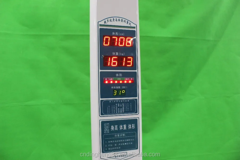 Ultrasonic electronic body scale is controlled by microcomputer. This machine can automatically measure the body’s height, weight, voice broadcasting and printing the measuring results. What’s more, this machine adopts imported ultrasonic detector and sophisticated weighing sensor, which make the results more precise. Our reliable quality guarantee and perfect after-sales service make our machines become the best choice of hospital, School, gymnasium, MEC and so on.