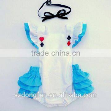 Wholesale Kids Clothing Baby Girls Alice In The Wonderland Ruffle Romper Infant Baby Kids Bule And White Cute Fancy Bubble