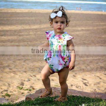 Latest baby girl breathable summer clothes floral printing romper flutter sleeve romper for wholesale