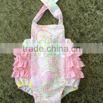 Newborn Baby Girls Monogrammed Bubble Toddler Kids Ruffle Romper Personalized Seersucker Baby Romper