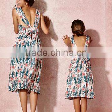 High Quality Summer Flower Printed Mother Daughter Matching Dress