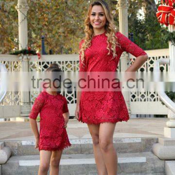 Lace Red Dress Matching Outfits Mother Daughter Party Dress