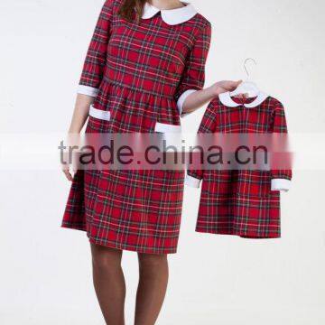 Hot Sale Mom And Daughter Dress Christmas Red Plaid Patry Dress For Mother and Daughter
