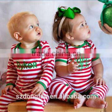 Newborn Baby Christmas pajamas red and white stripe Set unique boy or girl names monogram personalized sleepwear