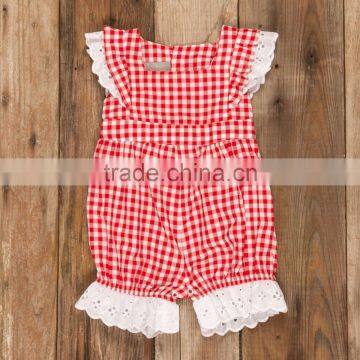 Girls Red Check Lace Bubble 4th of July Romper For Baby Kids