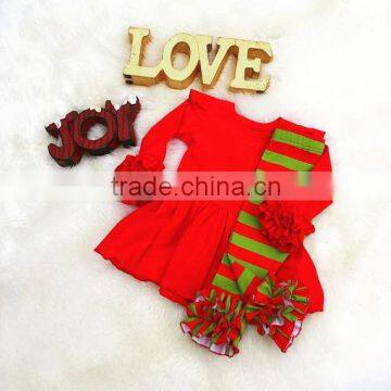 Wholesale Christmas Clothing Children Red Green Stripe Double Ruffle Leggings And Tops Girls Chrstmas Outfit