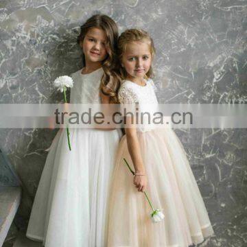 White Tulle Lace Cap Sleeve Kids Clothing Wholesale Flower Girl Dress Bridesmaid Robes