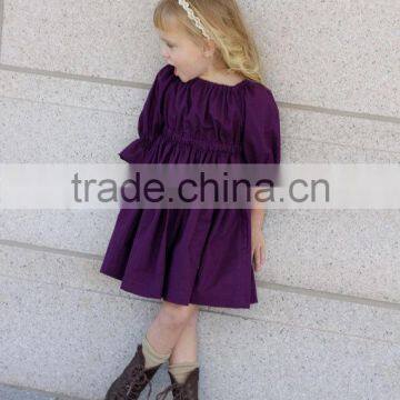 Hot Sale Baby Kids Ruffle Purple Gowns and Dresses 3/4 Sleeves Christmas Kids Baby Dress Girls
