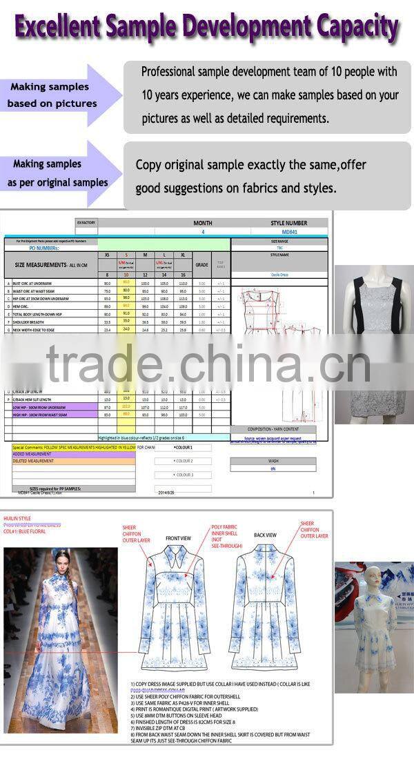 we are a professional manufacturer of fashion clothing more than 9 years, provided competitive price with good quality and offer the professional OEM service. We will first make sample for you according to your origianl sample to check the quality before placing order. Besides,our factory is closed to fabric market in Guangzhou which is the biggest fabric market in China ,so we get the newest fabric always. Finally,the main market is European, North America, Australia ,Southeat Asia , have much export experience.
