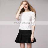Odm Manufacturer 2015 Summer Fashion Design Round Collar Half Sleeve Lace Shirt for Ladies Slim Sexy Women Big Size Blouses