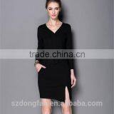 Bodycon Sexy Crepe Women Dress V Neck Long Sleeve Evening Dress