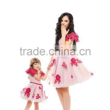 Latest 2016 Fuchsia Tulle Embroidered Dress Mother and Daughter Sets Family matching outfit Mommy and me Dress Sets