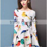 Casual 2015 Summer Style Sexy Bodycon Birds Print O Neck Pleated Party White Dress Women Vestidos Cheap Clothes China