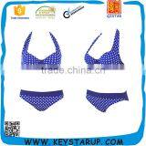 New Design High Solid Color Waist Blue Dot Sexy Girl Hot Bikini