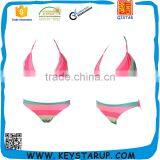 Promotion Pink Young Lady Pink Neck Halter Swimwear Bikini