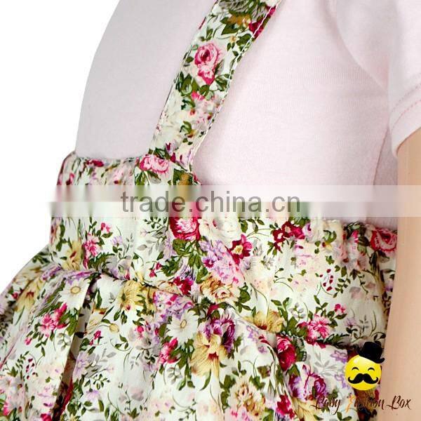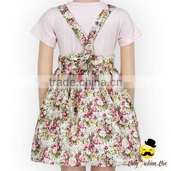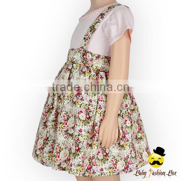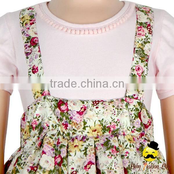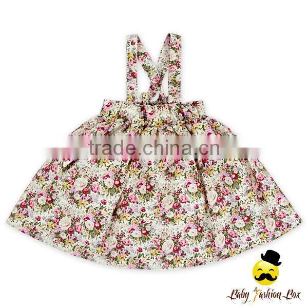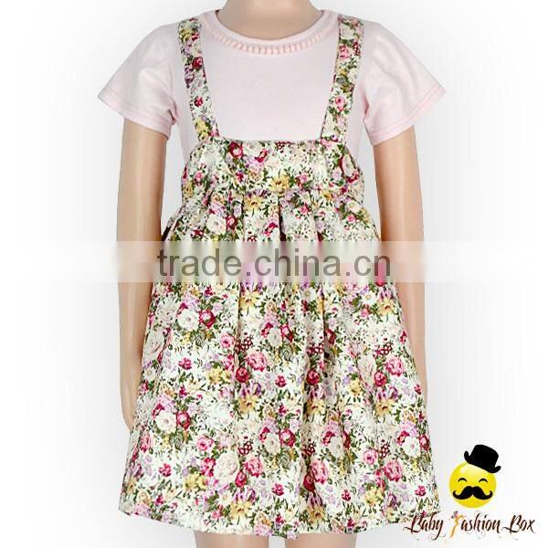 Summer Frock Design Cotton Flower Pattern Printed Baby Girl Suspender Floral School Uniform Rustic Dress