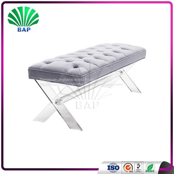 Stylish Smoke Gray Bench Lucite Furniture Legs Dressing Room Bench