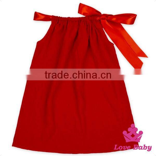 ZQ-177 Lovebaby Wholesale 100% Cotton Solid Red Color Stripe Bow,PILLOWcase DRESS