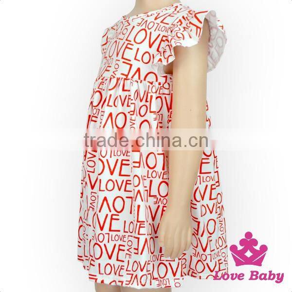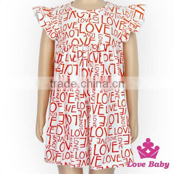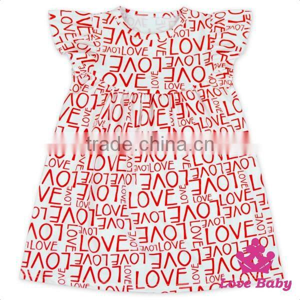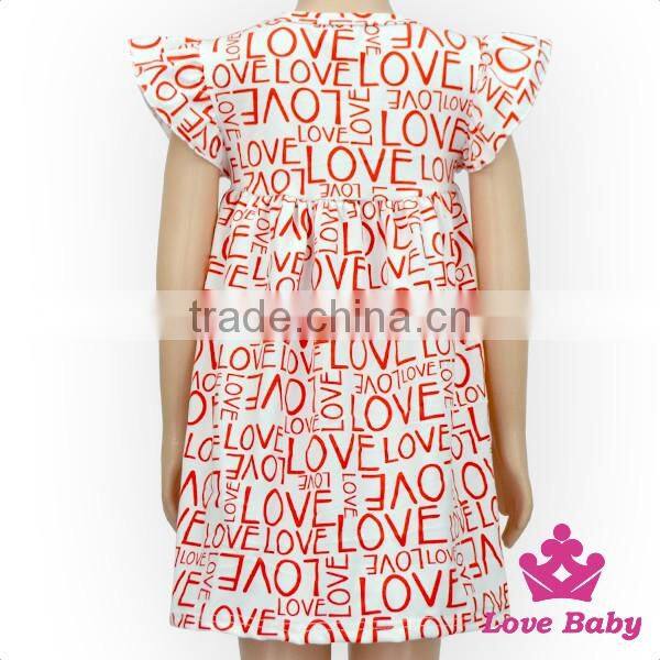 Hot Sale Summer Casual Kids Clothing Fly Sleeve LOVE Printed Design New Model Girl Short Dress